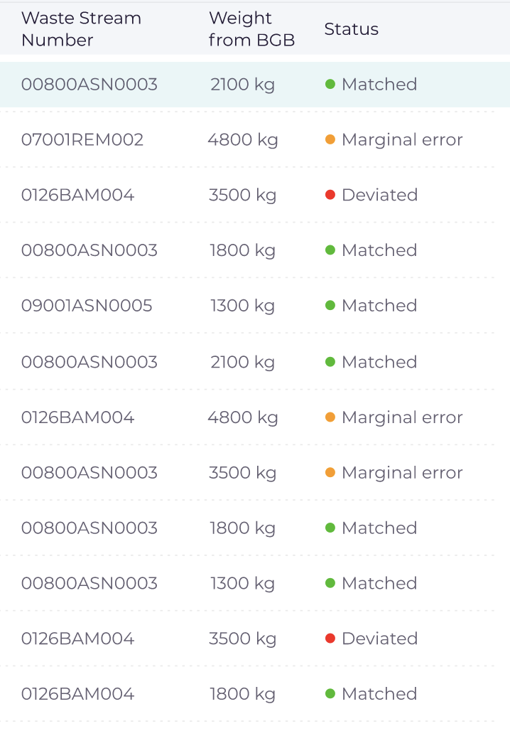 De controlemodule vergelijkt automatisch de eigen afvalregistratie met de registratie van de eindverwerker. Afwijkingen in gewichten, euralcodes of andere fouten worden direct zichtbaar, zodat de afvalstoffenregistratie en facturen geautomatiseerd gecontroleerd worden.