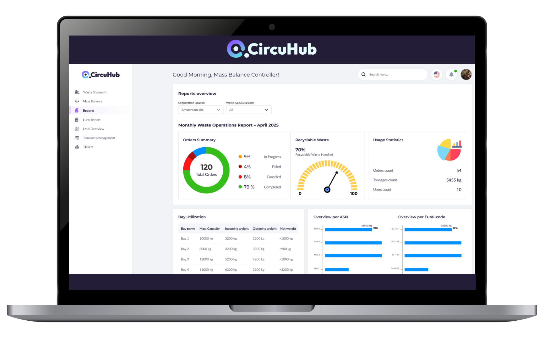 De massabalansmodule houdt volledig geautomatiseerd overzicht over alle ingaande, uitgaande en opgeslagen afvalstoffen binnen de organisatie. Hierdoor is op elk moment duidelijk welke hoeveelheden afval aanwezig zijn, welke stromen worden aangeleverd en welke worden afgevoerd.